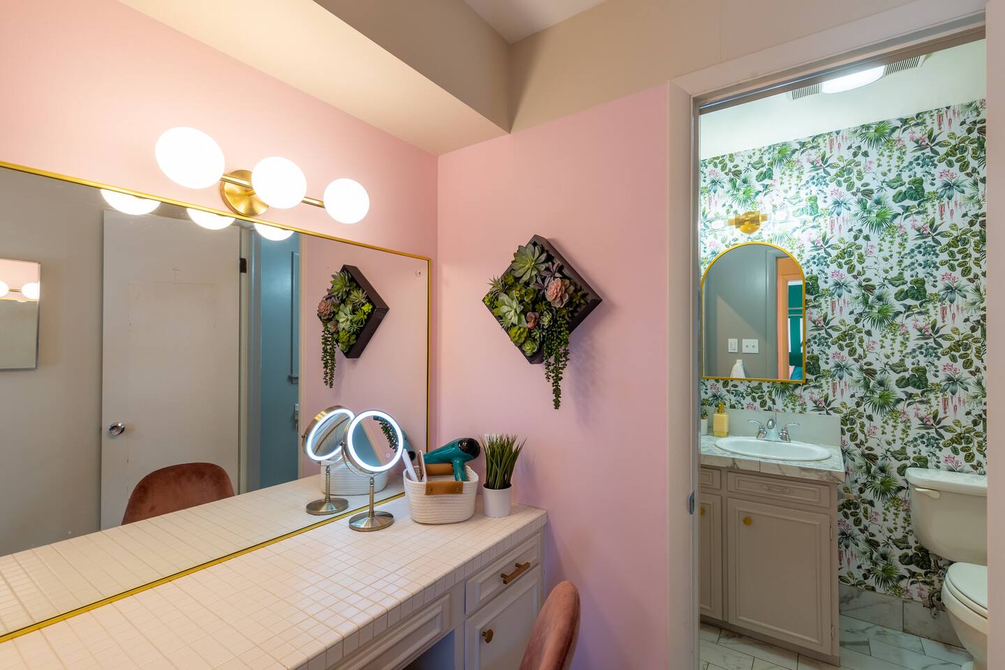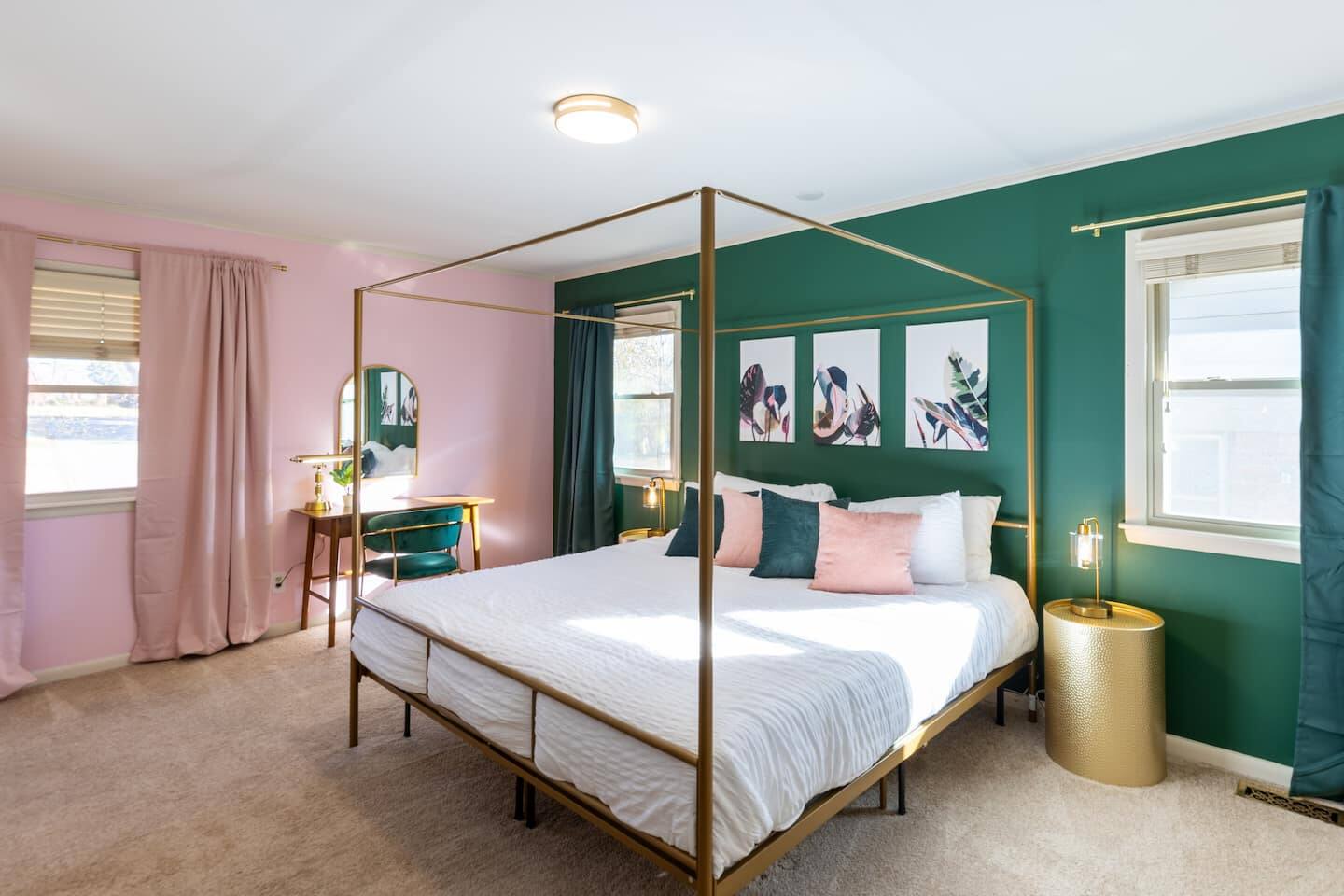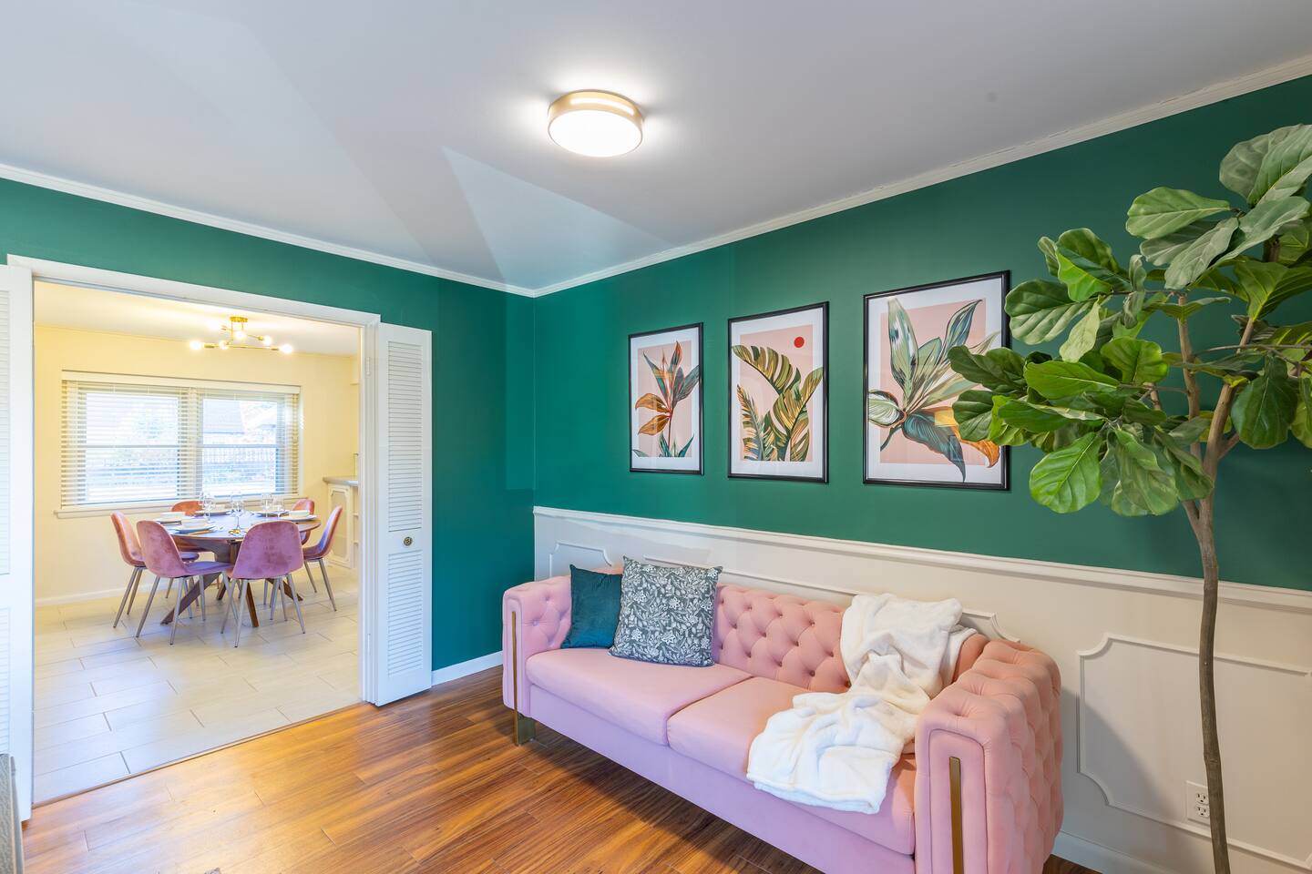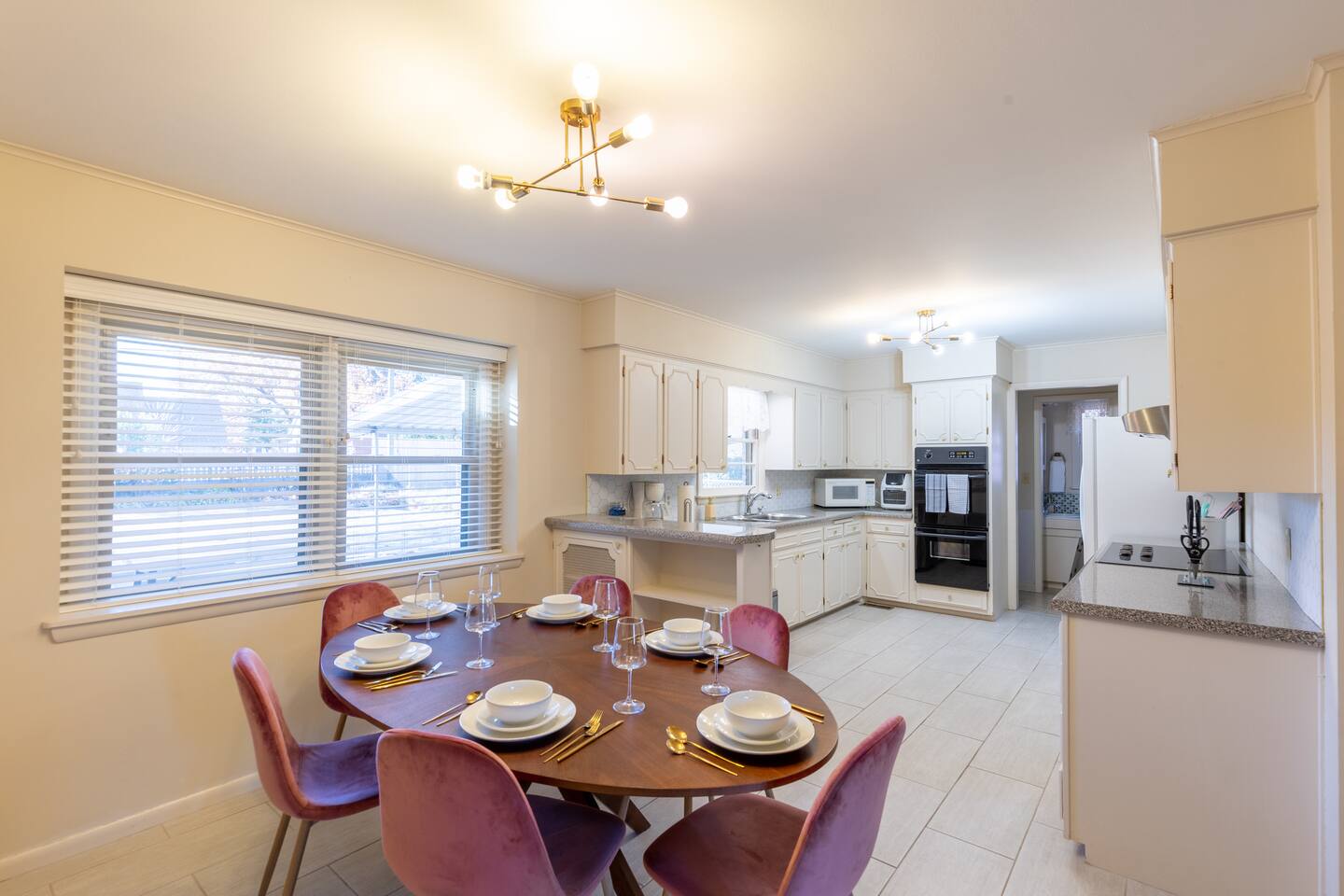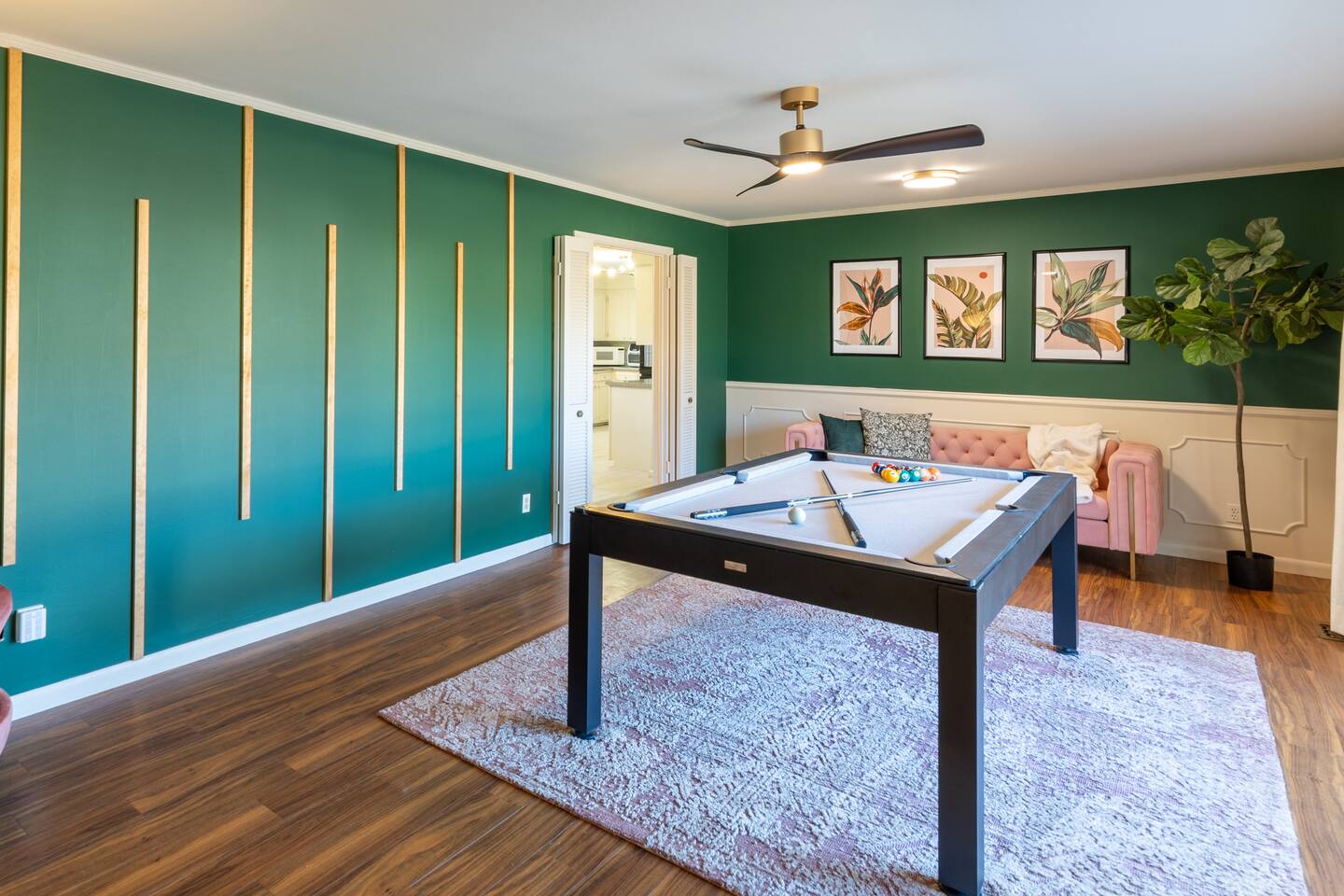 Sage&Bloom boasts over 2000 sq ft of living space featuring multiple lounging areas, a well equipped kitchen and a spacious backyard with outdoor seating and dining. Enjoy a game of pool in the front living area and a 65” Smart TV in the main living room, surrounded by comfy leather couches, lounge chairs, and a dinette table for games and relaxation. The master suite goes above and beyond with a charming makeup room with plenty of light, mirrors and counterspace. Amenities: - Pool Table - 65" 4K Smart Fire TV - Multiple living areas - Outdoor seating & dining - Makeup room - Grill - Fast Wifi - Fully stocked kitchen - Kids Utensils - Washer/Dryer - Desk - Games - Makeup Mirror - Flat Iron - Hair Dryer - Iron & Ironing Board Kitchen Ammenities: Chef knife set (17 pieces) - Ceramic pots & pans - Silicone cooking utensils - Silverware & Dinnerware - Kids Utensils - Coffee pot - Air Fryer - Toaster - Blender - Mixer - Cutting boards - Mixing bowls - Tupperware - Measuring cup set - Olive oil, Salt & Pepper - Spices - Baking & pizza pans - Oven mitts - Wine glasses - Wine cork/bottle opener
