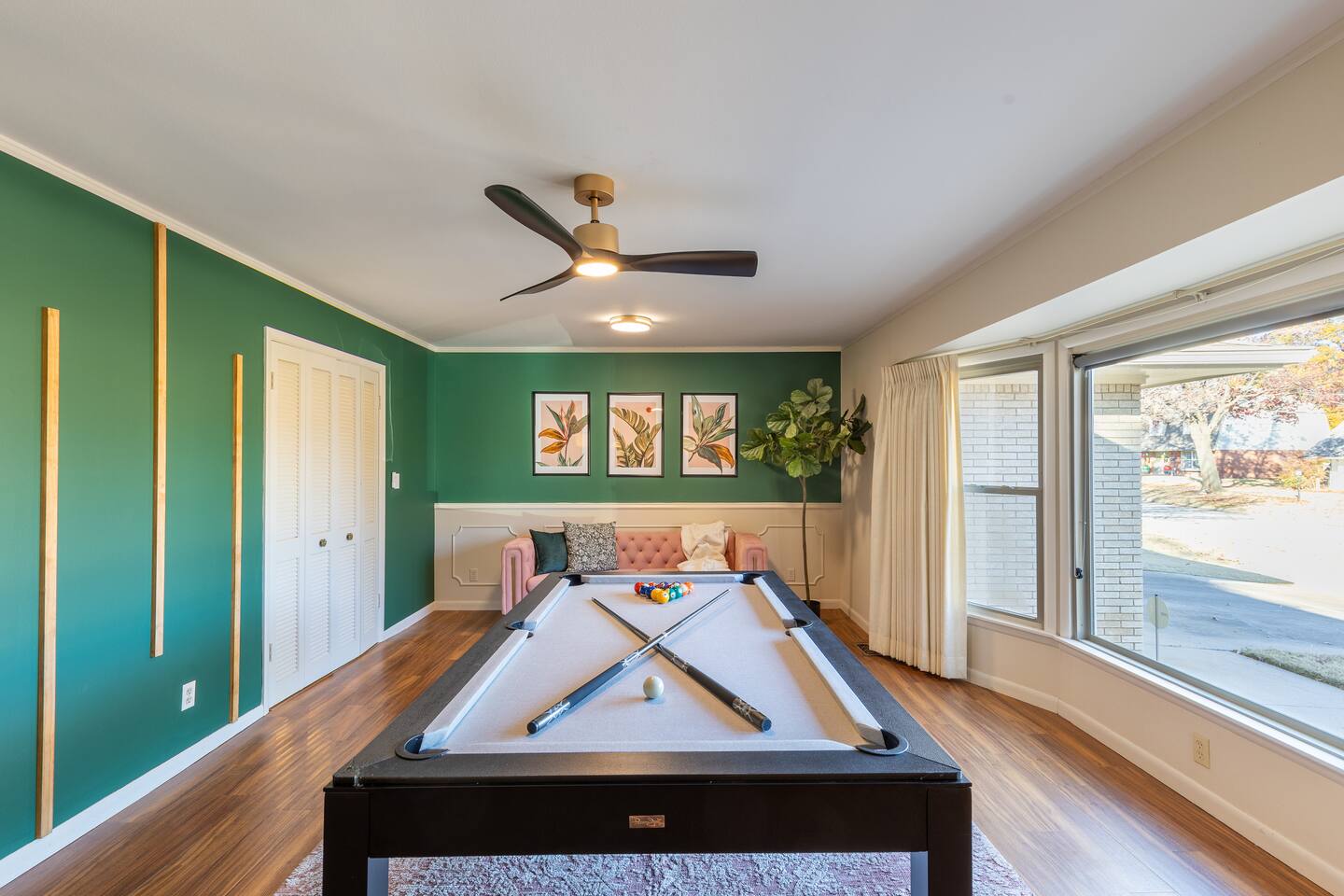 Discover the best of Tulsa with family or friends in the comfort of our spacious 3-bedroom, 2.5-bath home. The 2000 sq ft Sage&Bloom is tucked into a quiet neighborhood between Tulsa & Broken Arrow and is short drive to The Gathering Place, Expo Center or Downtown Broken Arrow. Ammenities: ✔ Pool Table ✔ 65" 4K Smart Fire TV ✔ Multiple living areas ✔ Outdoor seating & dining ✔ Makeup room ✔ Grill ✔ Fast Wifi ✔ Fully stocked kitchen ✔ Private fenced backyard ✔ Washer/Dryer ✔ Desk ✔ Games