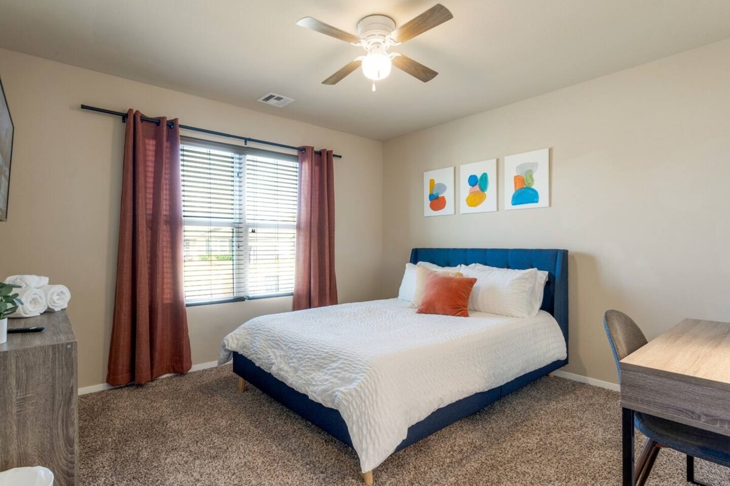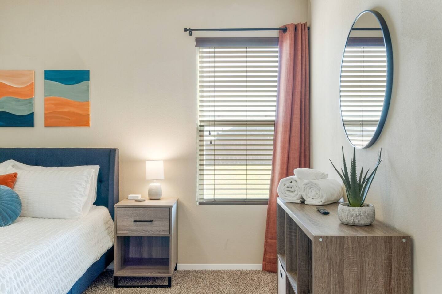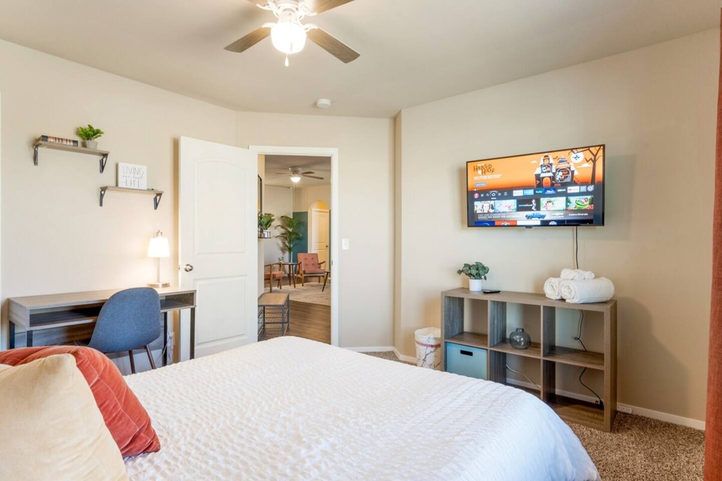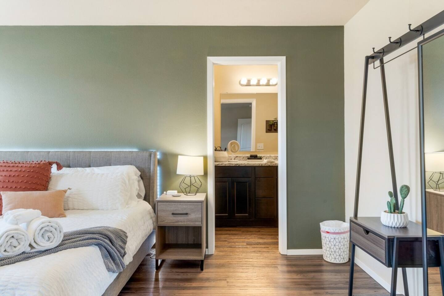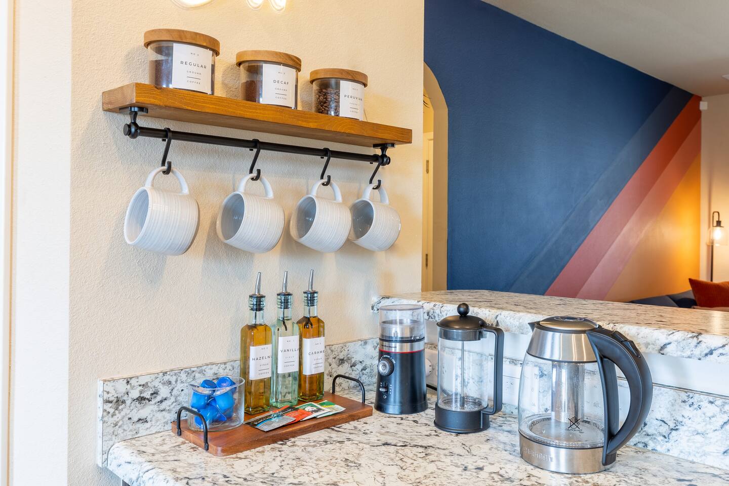 The Good Vibes Getaway is newly built and decorated with mid century modern furnishings & design. On the back patio, you can enjoy the Oklahoma sunset with a 6 person hot tub, fire pit table and string lights draped from a wood panel backdrop. LIVING AREA The colorful living room is the heartbeat of the open concept design, offering a unique and upbeat setting to relax between exciting Broken Arrow adventures. ✔ Large Modular Burrow Sectional ✔ 65" Amazon Fire TV ✔ FREE Netflix, Amazon Prime & Hulu ✔ High Speed Wi-Fi (500mb+) ✔ Board games & cards ✔ Record player with records PRIVATE BACKYARD Start your day recharging around the fire pit with a coffee from the coffee bar and end your night by unwinding in the 6-person Nordic hot tub! ✔ 6 person Hot Tub ✔ Patio with Outdoor Furniture & Fire Pit Table ✔ Gas Grill ✔ Corn Hole & Yard Games KITCHEN + DINING Open up the ample cabinetry to find everything you need to treat your family to their favorite meals. Coffee & Tea Bar ✔ Coffee Maker ✔ French Press ✔ Coffee Grinder ✔ 3 Different Coffee varieties ✔ Coffee Syrups & Creamer ✔ Electric Kettle Appliances ✔ Toaster ✔ Blender ✔ Mixer ✔ Instant Pot Kid-Friendly Items ✔ High Chair ✔ Kids Dinnerware ✔ Kids Utensils & Plates Fully Equipped Kitchen ✔ Chef knife set (17 pieces) ✔ Circulon Pots & Pans ✔ Silicone Cooking Utensils ✔ Silverware & Dinnerware ✔ Cutting Boards ✔ Mixing Bowls ✔ Tupperware ✔ Measuring Cup Set ✔ Spice Rack ✔ Olive oil, Salt & Pepper ✔ Baking & Pizza Pans ✔ Oven Mitts ✔ Wine Glasses ✔ Wine & Bottle Opener ✔ Other Utensils (Can Opener, Pizza Cutter, Grater, etc.) BEDROOMS Retreat to three comfortable bedrooms to rest for the night. ✔ Memory Foam Mattress ✔ Soft & Firm Pillows ✔ Night Stands with Reading Lamps ✔ Pack n' Play (Travel Crib) BATHROOMS Each bathroom is stocked with essential toiletries. Fresh towels are provided in the bedrooms and laundry room. ✔ Walk-In Shower (master) ✔ Makeup Mirror ✔ Makeup Towels ✔ Hair Dryer ✔ Flat Iron ✔ Essential Toiletries OTHER AMENITIES ✔ Iron & Ironing Board ✔ Vacuum ✔ Cleaning Supplies ✔ First Aid Kit